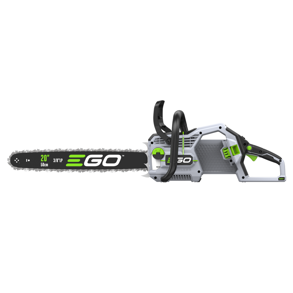 The CS2000E is EGO's highest specification chainsaw for home use, with a chain speed of 25m/s and a new configuration for better balance and handling, ideal for cutting thick branches and larger trunks up to 50cm (19 .6 inches) wide. It features an innovative new display that shows the battery charge level and speed setting. EGO Power+ chainsaws are built to tackle even the toughest jobs. Trunks, stumps, branches, nothing gets in the way.